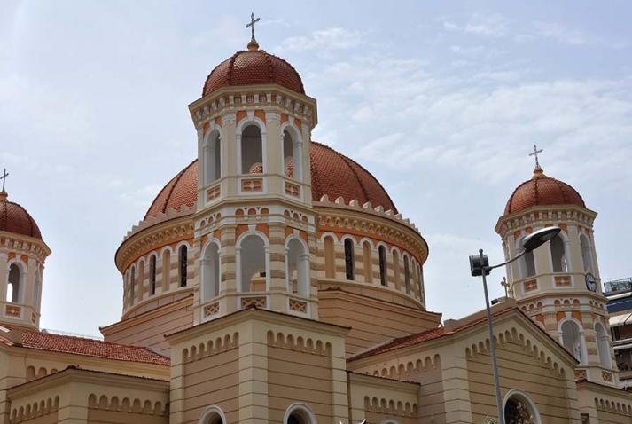 The present cathedral of Thessaloniki is dedicated to Agios Gregorios the Palamas and it is situated at the centre of the town, at the intersection of Metropolitan and Agias Sophias streets. In the same place, existed a church in honor of Agios Dimitrios, which was the metropolis of Thessaloniki during the Ottoman occupation. This monument, however, was destroyed completely in 1890 by a major fire that hit the part of the town that is now surrounded by Ladadika, the sea and the streets of Ermou and Pavlos Melas. The church of Agios Gregorios the Palamas was founded in 1891 and completed in 1914, with designs by the well-known architect Ernst Ziller,that were subsequently amended by the architect Paionidis Xenophon, who was responsible for project implementation. It is worth noting that beside the church there was constructed between 1890 and 1893 a neoclassical building designed as well by Chiller, which hosted the Consulate General of Greece and which today houses the Museum of Makedonikou Agona.
